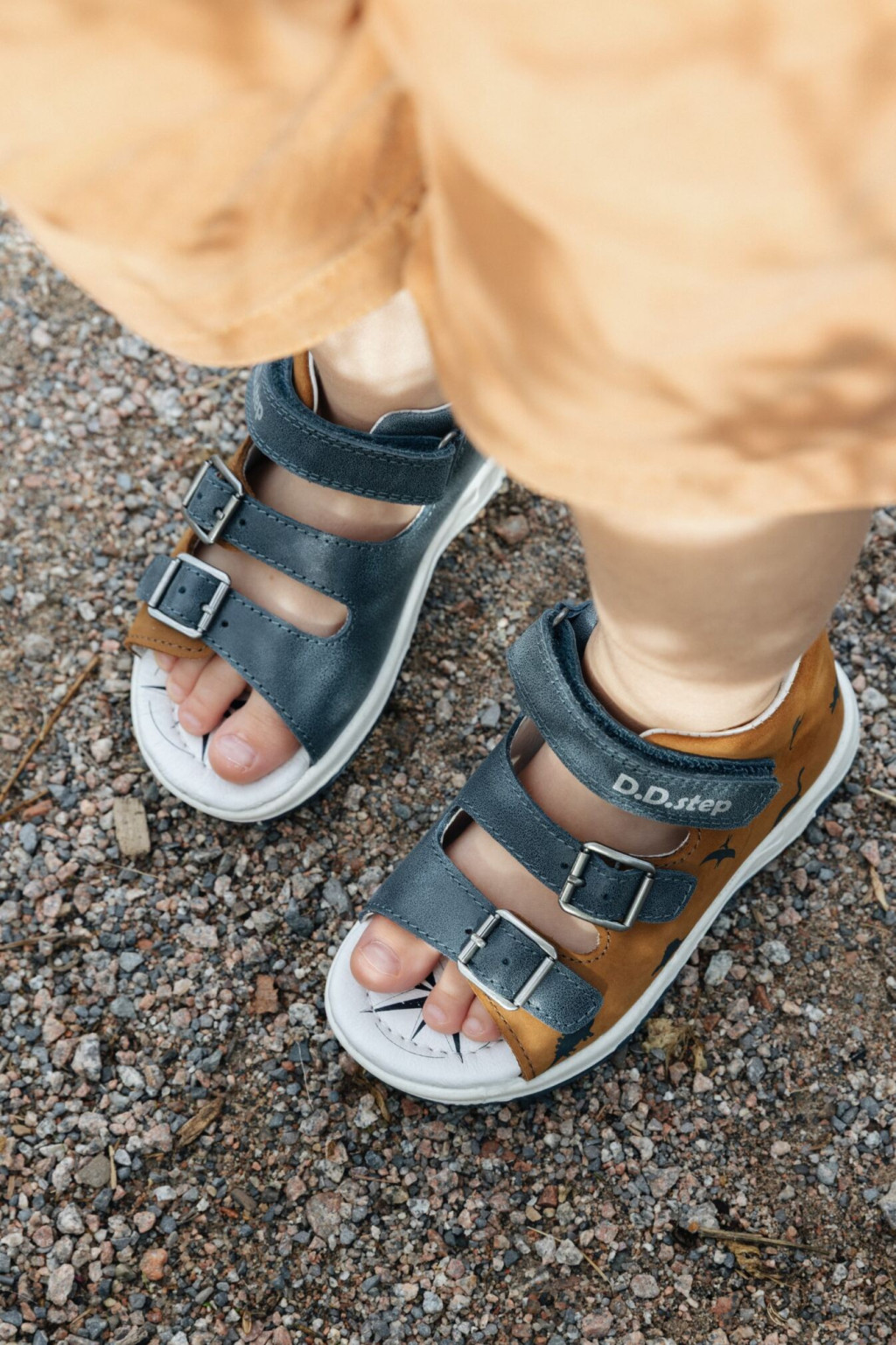 Irány a dinók világa! Ez a D.D.Step kisfiú szandál a sötétkék és a divatos mustársárga színek kombinációjával, valamint a mókás dinoszaurusz mintákkal minden kisfiú kedvence lesz. A G103-as széria garantálja a kényelmet és a lábacskák egészséges fejlődését az első nyári kalandok során.