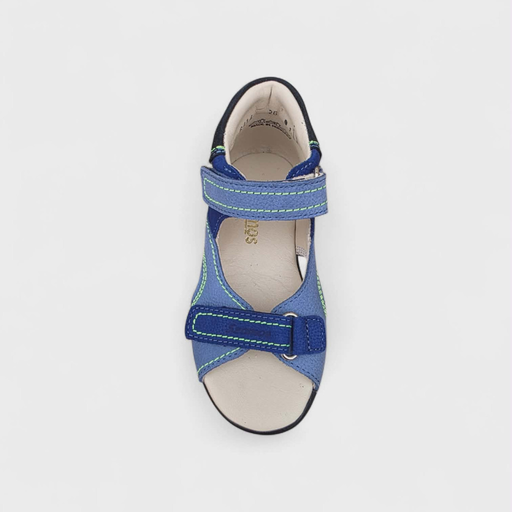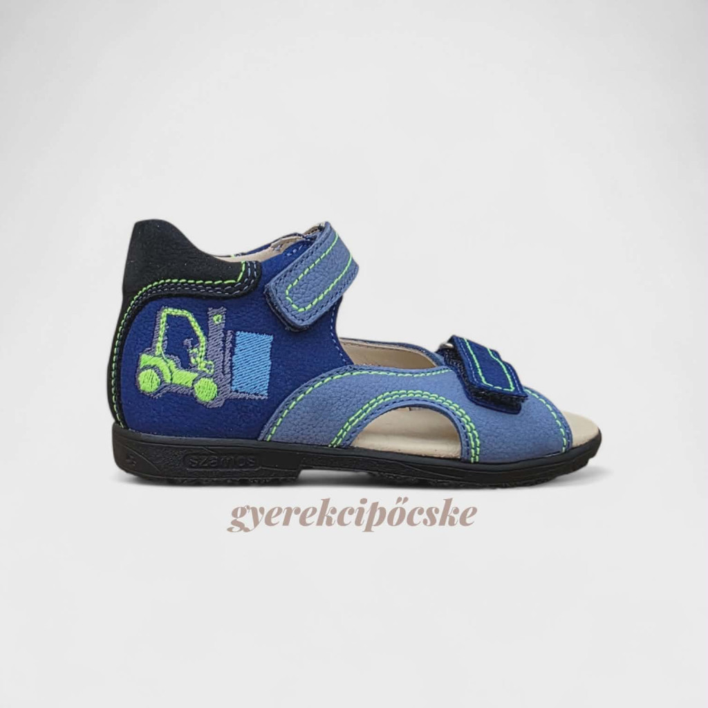 Felsőrész: Kiváló minőségű, tartós természetes bőr sötétkék és középkék színekben, neon zöld kontrasztvarrással.