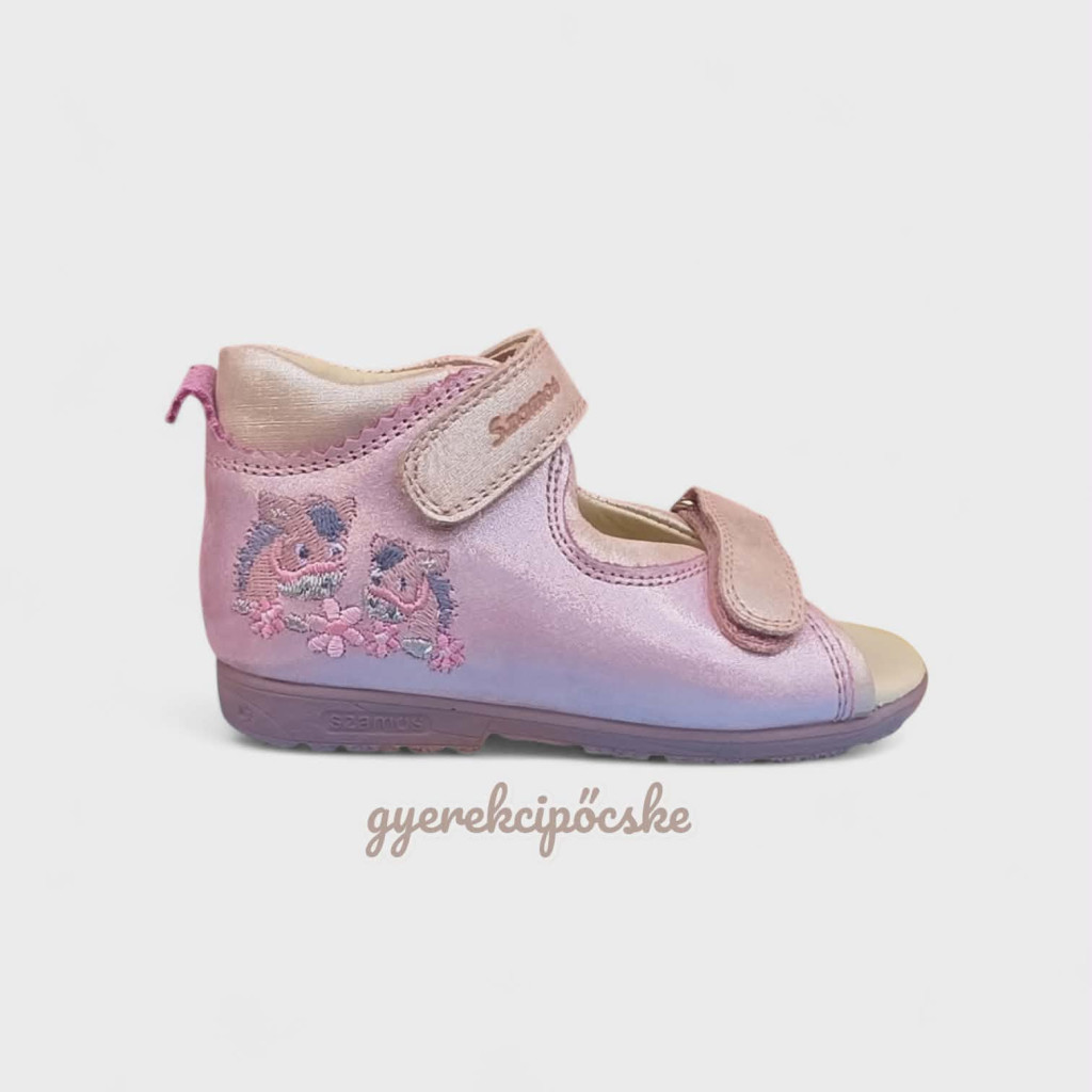 Típus: Szupinált (döntött sarkú) nyitott orrú kislány szandál az egészséges lábfejlődésért.